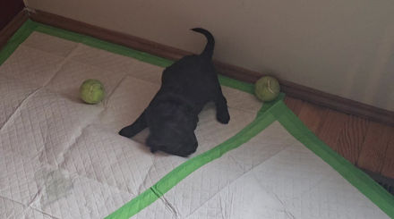 Fourth born - his whelping name means "little brown one" although he outweighed all his siblings at 14.8 oz. Oran continues to be the biggest pup and is unafraid to explore and wander his environment and bite the tails of his littermates. He weighs just under 7lbs and will have a smoother haircoat.